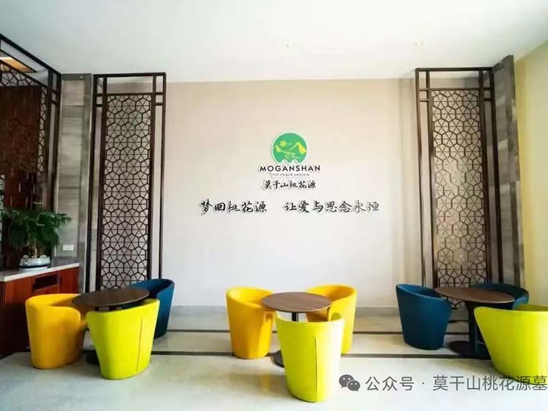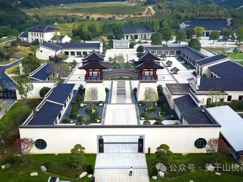莫干山桃花源位于浙江省德清县莫干山大道北侧,是国家合法经营性公墓,规划占地面积808亩,临近杭州绕城高速西复线,距杭州地铁10号线最近站3公里,距德清高铁站10公里,到杭州主城区35公里,到上海150公里。园区地处美丽富饶的沪宁杭金三角中心,为莫干山的"支龙脉",万里行龙,气势雄伟,地脉钟灵,是藏风蓄水,大富大贵的风水宝地。 整个园区由桃花源公园,孝道文化广场,国学文化中心,桃花溪风景带福地安葬区和其它纪念设施组成。园区通过本地特色传统文化的提炼,以吴越文化,良渚文化,防风文化,游子文化,西湖文化,运河文化等文化精选,以桃花源的风貌在园区落地建设,逐步建设成为沪宁杭金三角地区人民福安逝者,祭祀祈福,参观游览,寻找历史记忆,接受传统文化教育和生命教育的人文纪念公园。